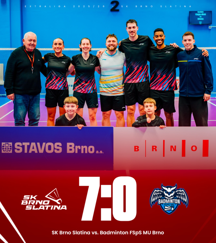 Základní část Extraligy 2025/26 opanoval tým SK Brno Slatina za který pravidelně nastupuje i náš Honza Janoštík. V posledním kole si tým SK Brno Slatina poradil s týme FSpS MU Brno jednoznačně 7:0 a zajistil si tak přímý postup se finálového turnaje. Honza v tomto utkání přispěl dvěma body a to ve čtyřhře spolu s Coelho de Oliveira Ygor a ve dvouhře.